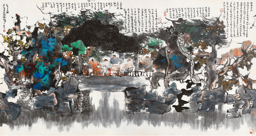 至于负者歌于途,行者休于树,前者呼,后者应,伛偻提携,往来而不绝者,滁人游也。临溪而渔,溪深而鱼肥,酿泉为酒,泉香而酒洌,山肴野蔌,杂然而前陈者,太守宴也。宴酣之乐,非丝非竹,射者中,弈者胜,觥筹交错,起坐而喧哗者,众宾欢也。苍颜白发,颓然乎其间者,太守醉也。
