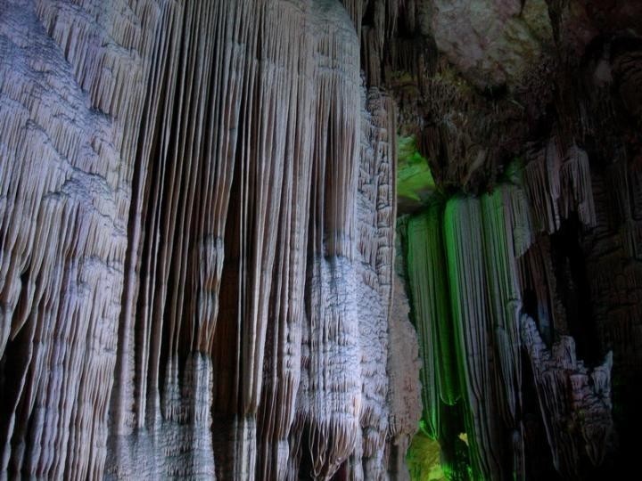 这里的山,平地拔起,千姿百态;漓江的水,蜿蜒曲折,明洁如镜;山多有洞,洞幽景奇;洞中怪石,鬼斧神工,琳琅满目,于是形成了“山青、水秀、洞奇、